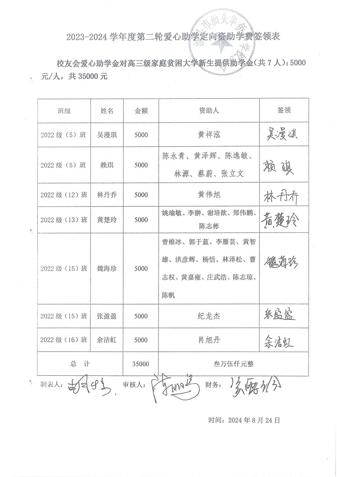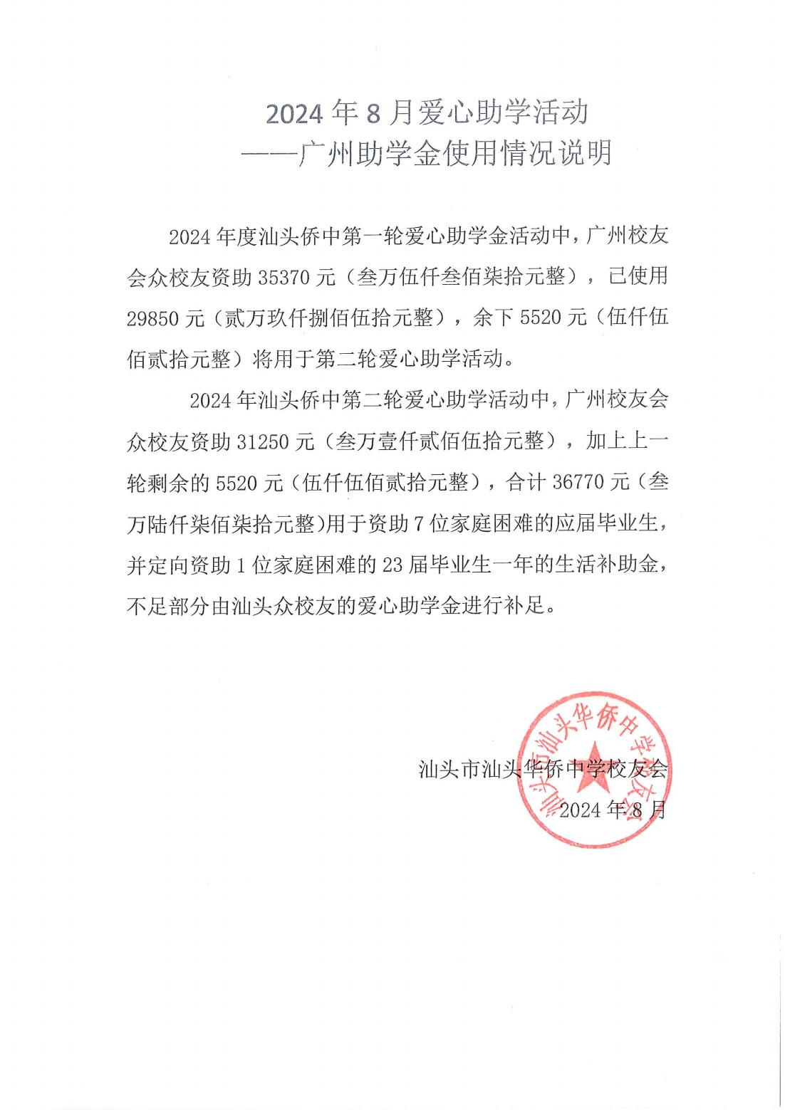 为进一步加强对学校奖助学金的管理,确保资助政策落实到位,切实做好学校奖助学金的评审发放管理工作,根据上级教育主管部门的有关精神,坚持公开、公平、公正的原则,顺利完成了2024学年度第二轮广东汕头华侨中学奖助学金发放工作,现将工作总结如下。如有未尽事宜或疑问,可通过“中食安泓爱心公益基金会”微信公众号联系。